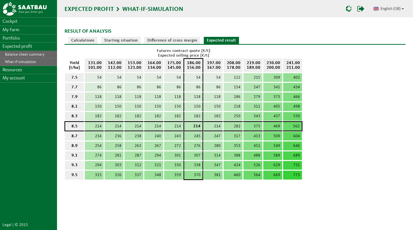 Additionally, you can simulate all variants of crop insurance in order to take into account all contingencies. The operational result to be expected for your business in case of changes in price and/or quantity is at your fingertips. That way, you are always on top of your grain marketing.